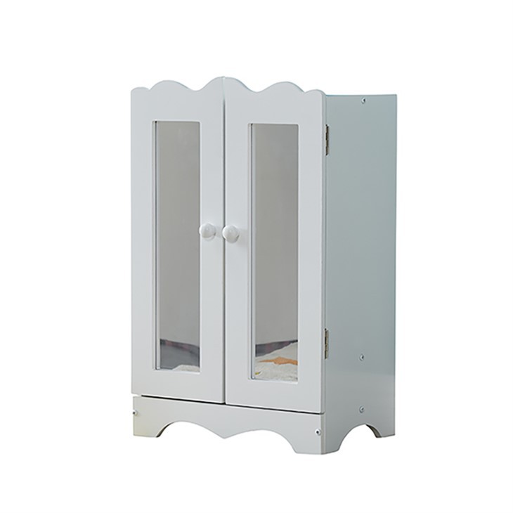 Doll Closet se yon fason bèl ak elegant pou timoun yo sere rad poupe yo. Li se gwosè pafè a pou 18" poupe ak karakteristik klasik kwen festonn ak sis krochi an bwa - yon adisyon bèl nan chanm nenpòt poupe a. Se doub glas la te fè nan plastik san danje epi dirab ak konstriksyon an bwa vle di ti klozèt la pwomèt ane nan plezi.