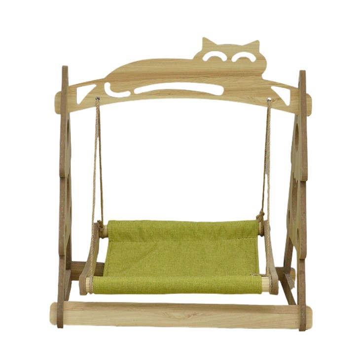 Hammock balanse chat an bwa a fèt ak bon jan kalite bwa, ki solid ak ki estab, epi li gen yon gwo kapasite chaj-pote 10 kg pou bèt kay.